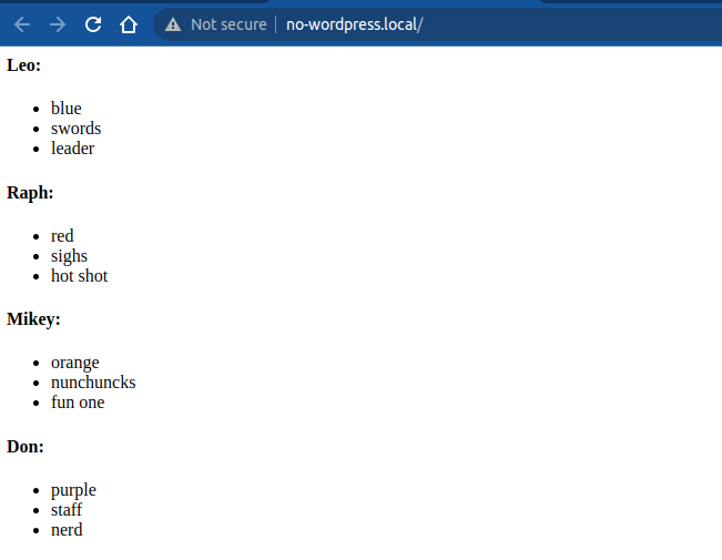 'Mikey' => array('orange','nunchuncks','fun one'),