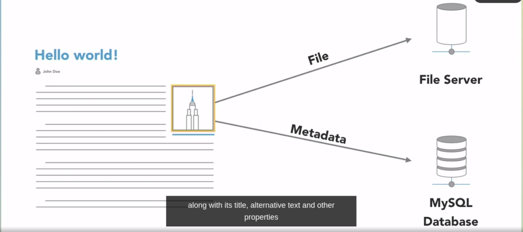 But the media file is added to the post, then the media is stored in the server, but its metadata is stored into the database.